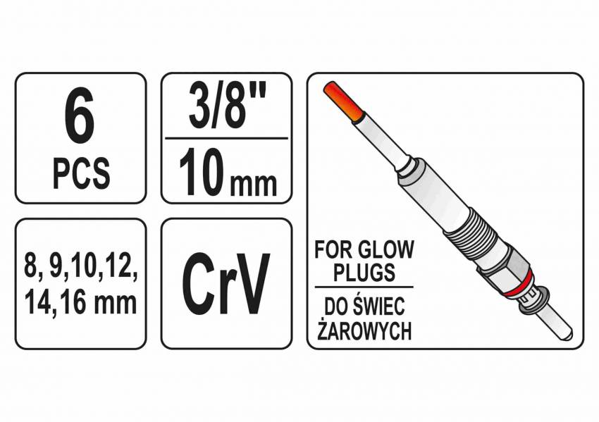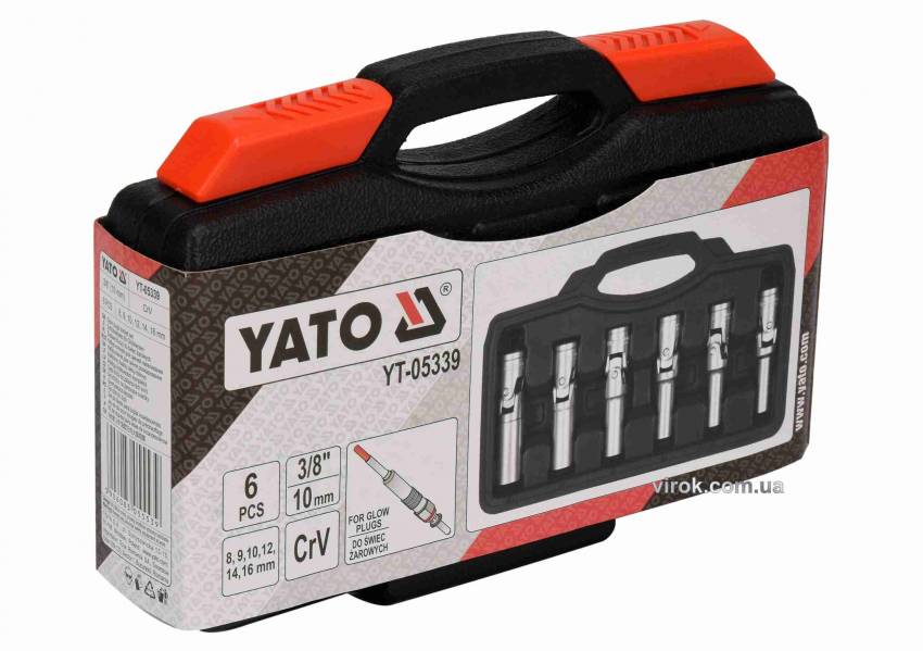 Ключі торцеві для свічок розжарювання YATO: 3/8", 8-16 мм, на шарнірі, Cr-V, 6 шт. кейс.