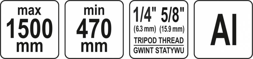 Штатив тринога YATO телескоп (3 секціі) . кріплення 5/8", з штангою 38см. H= 47-150 см. алюмінієвий