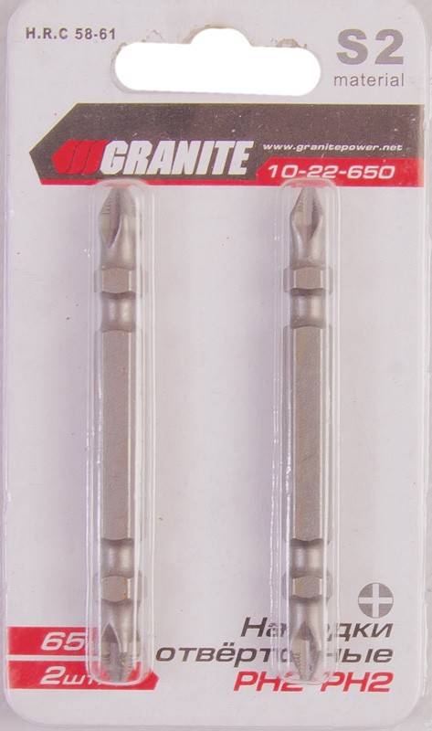 GRANITE Насадки викруткові РН2-РН2*65 мм, S2, 2 шт, Ст.: 10-22-650