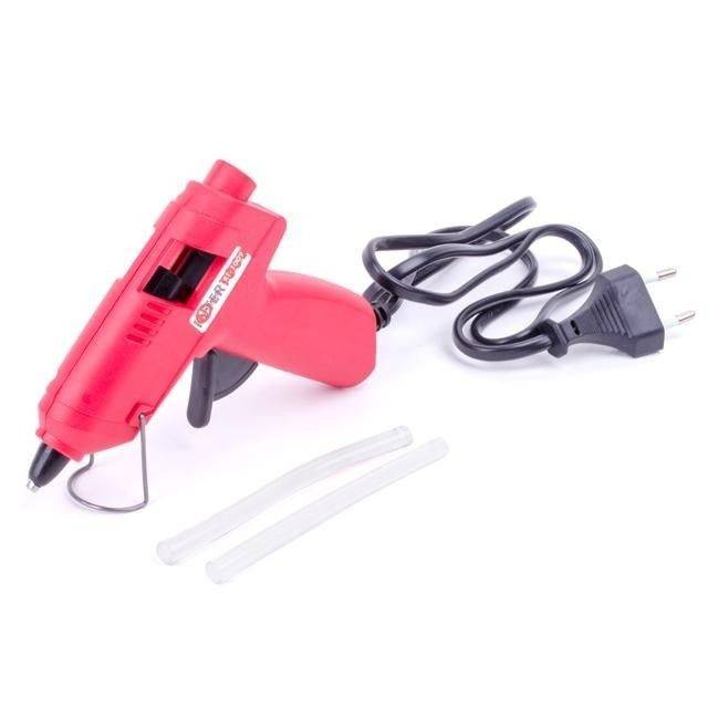За допомогою термопістолета ви моментально склеїте елементи, предмети, поверхні, при цьому клейові стрижні добре взаємодіють з більшістю матеріалів: папером, картоном, тканиною, шкірою, склом, керамікою, деревом та ін.