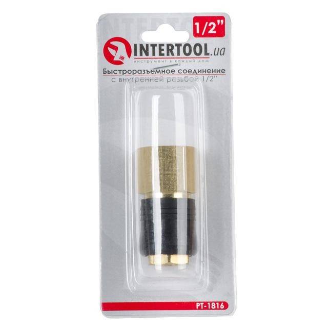 З'єднання виготовлене з латуні, має зручну накладку з ABS пластику. Швидкороз'єм PT-1816 з клапаном 'мама' універсального типу підходить для швидкороз’ємних з'єднань 'папа' будь-яких видів. З іншого боку фітинг оснащений внутрішньою різьбою 1/2'.