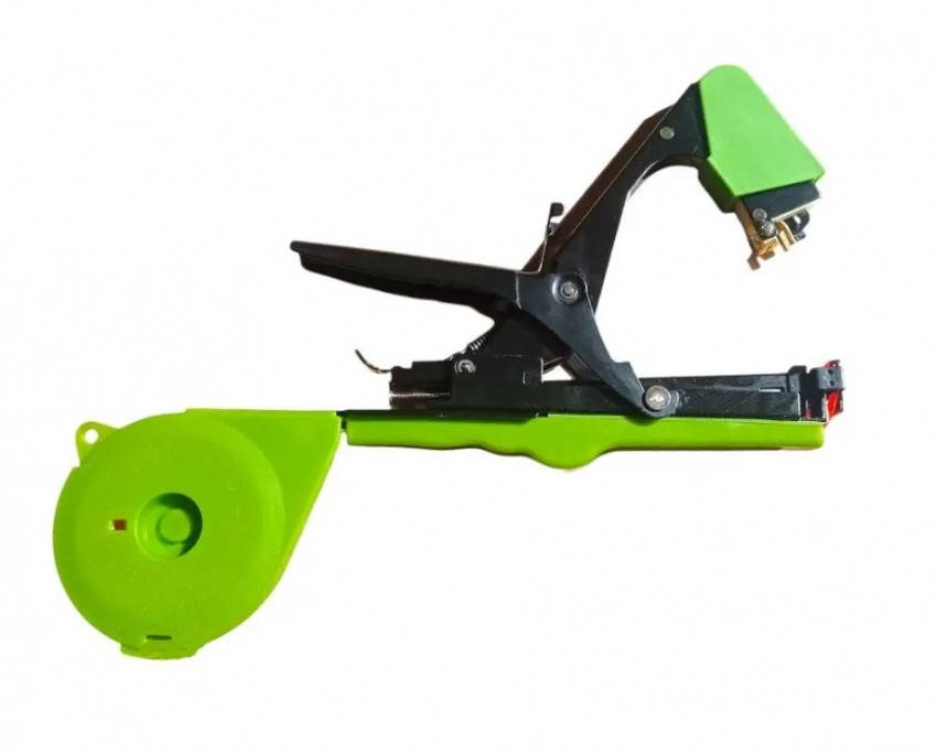 Призначений для підв'язки томатів, фіксації лози винограду, малини, саджанців, гілок та пагонів овочів і квіткових рослин до опори, шпалери. Значно полегшує та прискорює процес підв'язки. Для підв'язки в інструменті використовується стрічка і скоби. При натисканні на важіль витягується стрічка, нею охоплюють стебло і опору, і при другому натисканні важеля скоба скріплює кінці стрічки і обрізає її. Степлер значно полегшує та прискорює підв'язку рослин. Довжина інструменту 320 мм, габаритні розміри - 320х260х27 мм, вага 320 г, корпус складається з направляючої для скоб, арки, закритої доріжки для стрічки, барабана для мотка підв'язувальної стрічки, ручки, корпус виготовлений з металу та пластику, степлер працює за принципом ножиць, при натисканні на ручку - обмотує рослину стрічкою та фіксує її навколо прикріпленої до опори рослини металевою скобою.