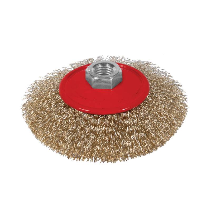 Щітка дротяна конусоподібна (для УШМ, Ø22.2мм) Ø100мм Sigma (9016101) призначена для використання як насадка для УШМ при зачистці поверхонь від лакофарбових покриттів, іржі, окалини, різних забруднень, зачищення зварних швів. Переваги: Покриття із латуні захищає робочу частину від корозії; Латунований дріт Ø0.3мм; Вітаний дріт дозволяє проводити зачисні роботи у важкодоступних місцях. Купити щітку дротяну Sigma Ви можете, оформивши замовлення в нашому інтернет-магазині за допомогою простої форми, доставка здійснюється по всій Україні. Якщо у Вас виникли запитання, Ви можете зателефонувати за вказаними номерами або замовити зворотній дзвінок. Спеціалісти нашого інтернет-магазину нададуть Вам детальні консультації та допоможуть зробити правильний вибір.