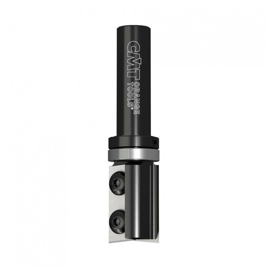 Цей тип фрези зі змінними ножами оснащений верхнім підшипником для фрезерування по шаблону. Форма ножів має кут 30°, для кращого врізання в матеріал. Для чистової обробки торців, фрезерування фігурного профілю і пазів на плитних матеріалах (ЛДСП, МДФ) і заготовках з твердих порід деревини. Для використання на ручних фрезерах або фрезерних верстатах з ЧПУ.