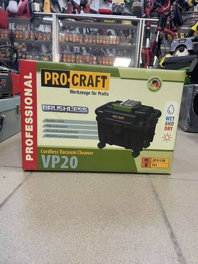 Акумуляторний будівельний пилосос Procraft VP20 ― це пилосос, що перезаряджається, спеціально розроблений для будівельних майданчиків, майстерень та інших місць з важкими умовами роботи. Цей потужний і міцний інструмент призначений для прибирання великих об'ємів пилу, сміття і рідини, забезпечуючи чистоту і безпеку робочого простору.
