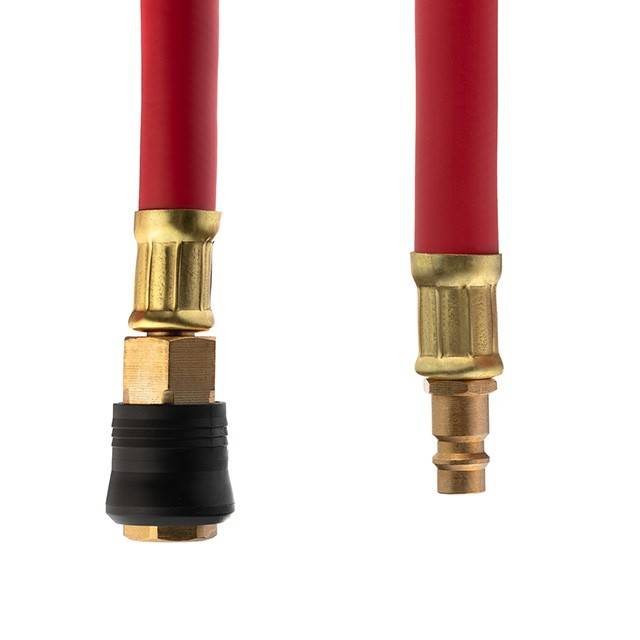 Шланг легко підключається до системи за допомогою швидкороз'ємних з'єднань європейського типу, вони герметичні та дозволяють швидко під’єднати пневмоінструмент до компресора. Виготовлені з'єднання з латуні, мають ряд переваг перед сталевими фітингами. Характеризуються кращою стійкістю до корозії, мають більший строк експлуатації, довговічніші.