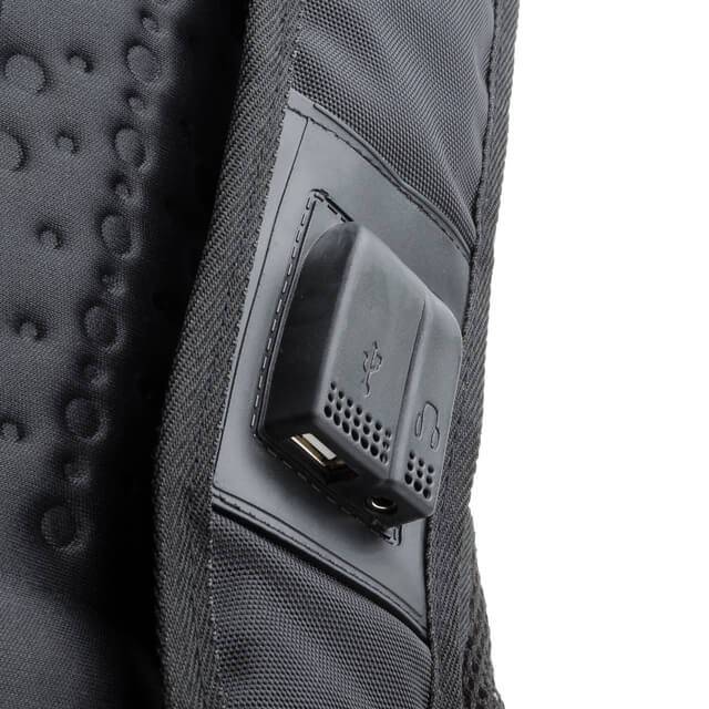 На плечових лямках розміщене кріплення для окулярів. Система з виходом для навушників 3,5 мм та USB-роз’єм дозволяє покласти телефон, планшет або плеєр всередину рюкзака, а навушники під'єднати до гнізда на плечовому ремені. Вам ніколи не будуть заважати дроти!