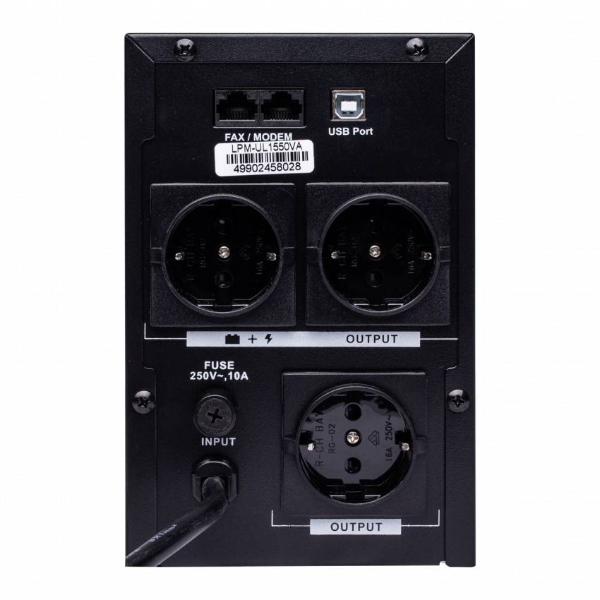 ДБЖ LPM-UL1550VA має надійний захист від короткого замикання, стрибків напруги, перевантажень, розряду і надлишкового заряду батарей.