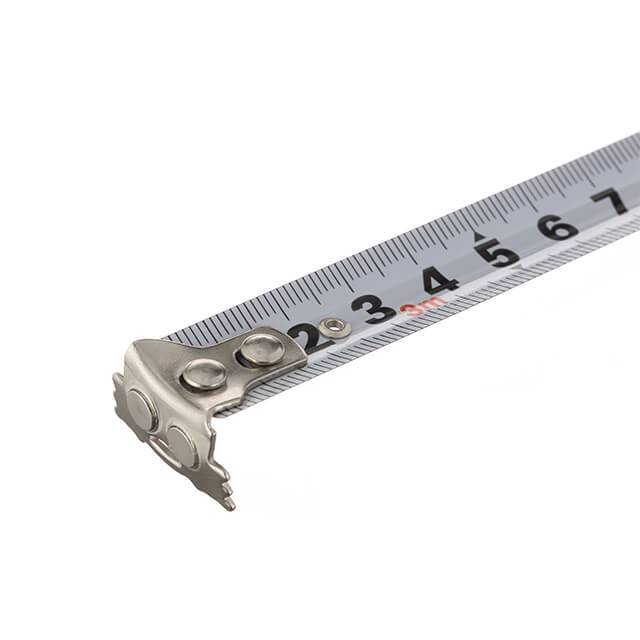 У рулетці встановлений потужний магнітний зачеп з двома магнітами, дозволяє зафіксувати початок полотна до металевих деталей та елементів, що покращує якість вимірів та дозволяє працювати без помічника.