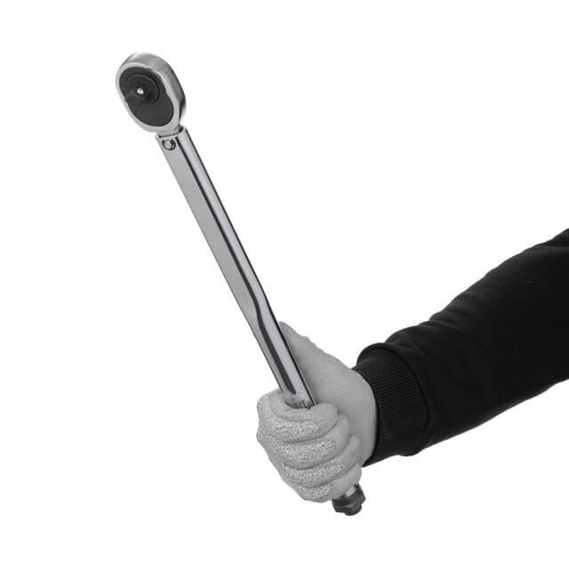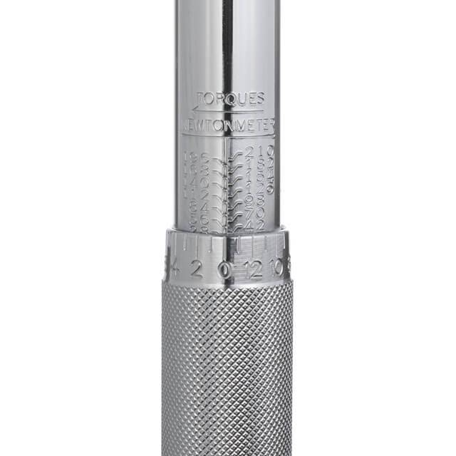 Ключ динамометричний має реверс, працює на затягування лише праворуч. Зручне регулювання крутного моменту з подвійною шкалою (Фут/фунт та Н/м) легко зчитується. Стопорна гайка на торці ключа фіксує налаштування значення крутного моменту, поки ви працюєте.