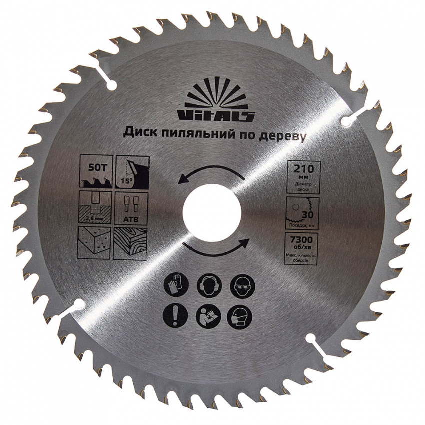 Пиляльний диск Vitals по дереву 210x30/25.4/20, ATB 50 підходить для поздовжнього та поперечного розпилу деревини - як м'якої, так і твердої породи, а також ДВП, ДСП.