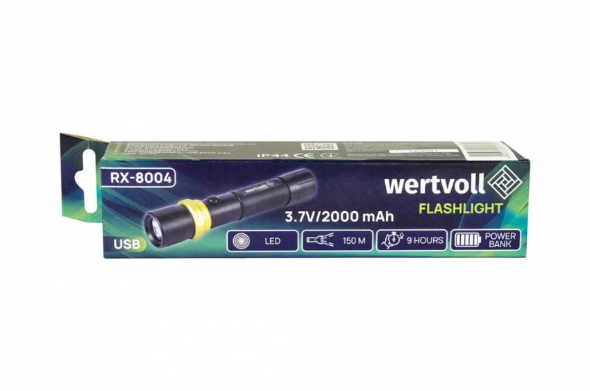 Ліхтар WERTVOLL 3 режими LED IP44 Li-ion 2000 mAh/t 7000 K/240 lum powerbank AL 168х36 мм RX-8004