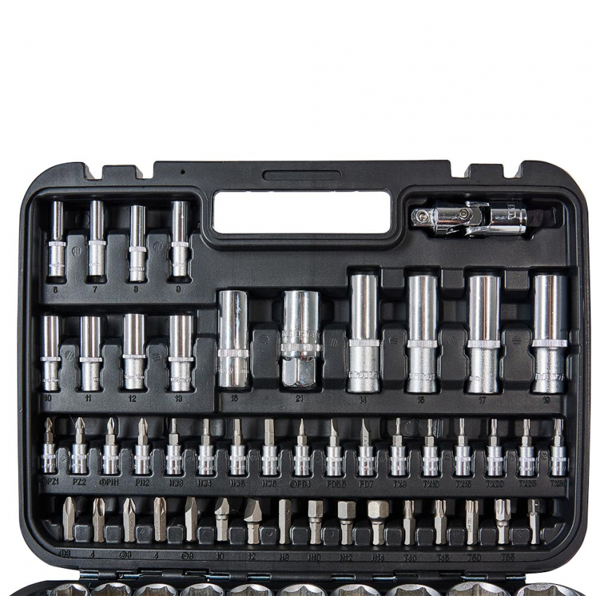 • 1/2″ насадки (18 шт.): 10, 11, 12, 13, 14, 15, 16, 17, 18, 19, 20, 21, 22, 23, 24, 27, 30, 32 мм;