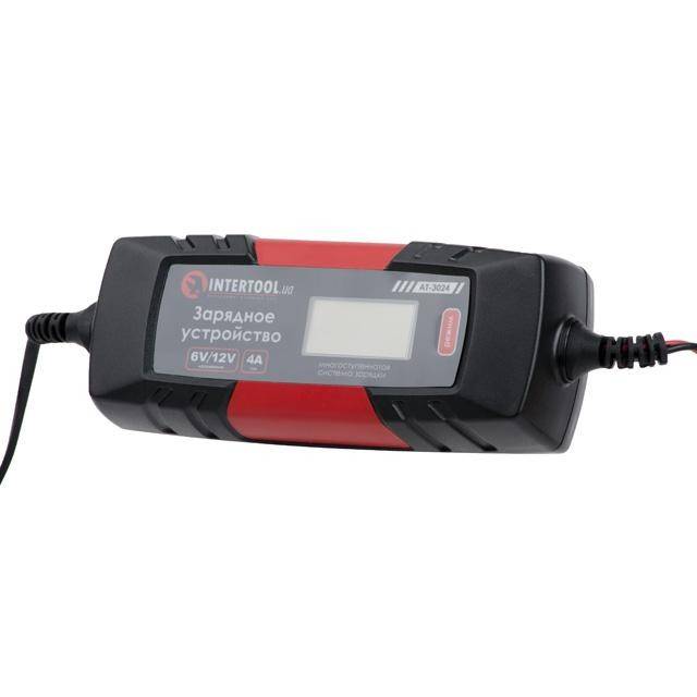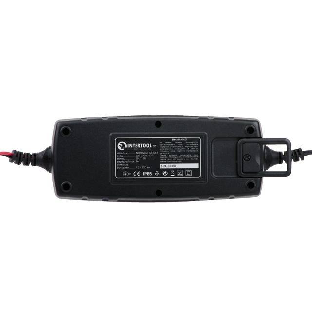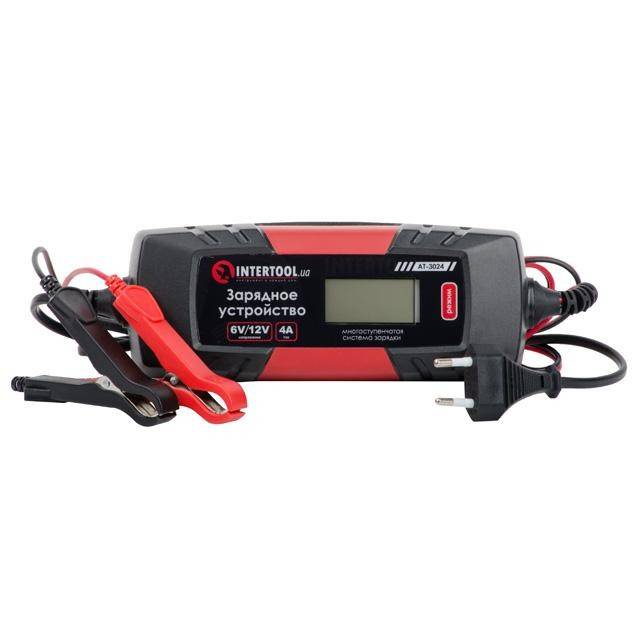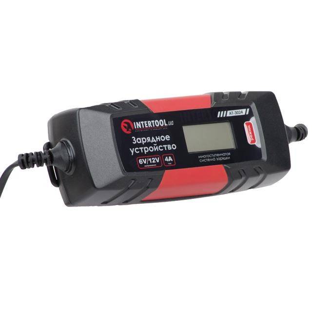 Зарядний пристрій INTERTOOL AT-3024 – інтелектуальний з мікропроцесором та системою з багатоступеневим циклом заряджання. Пристрій підходить для всіх типів батарей: 6 В мотоциклів, 12 В автомобілів, а також для акумуляторів катерів, газонокосарок, гідроциклів, сільськогосподарської техніки, промислового та побутового обладнання.