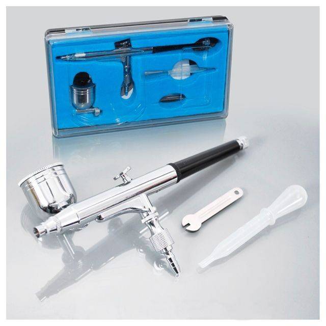 Аерограф міні з комплектом аксесуарів і пневматичним шлангом - це компактний та зручний пристрій як для професійного використання, так і для хобі. Цей інструмент ідеально підходить для точного творчого розфарбовування різних поверхонь. Стане в пригоді художникам, ілюстраторам або ретушерам для малювання складних малюнків, візерунків, дрібного розпису тощо. Інструмент можна використовувати також для нанесення макіяжу, дизайну нігтів або прикрашання тортів.