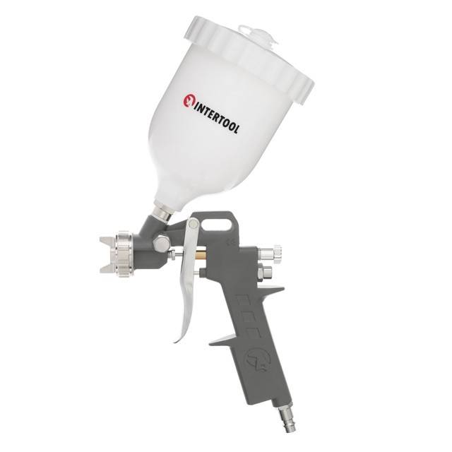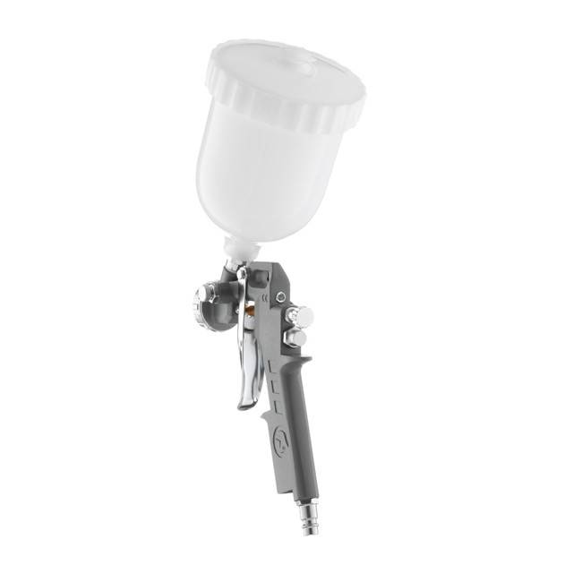 Пістолет для фарбування має налаштування, які дозволяють вам більш точно відрегулювати подачу повітря та форму факела. Оснащений пластиковим бачком, об'ємом 600 мл, завдяки чому можна візуально контролювати рівень фарби, що дуже зручно. За необхідності бачок можна замінити на аналогічний новий PT-1902 або металевий PT-1907.