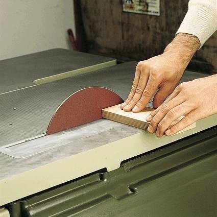 Регулювально-шліфувальний диск. Призначений для перевірки і регулювання ходу вузла і паралельного упору. Диск необхідно встановити на верстат і з допомогою косинця перевірити кут нахилу диска відносно поверхні столу, в разі потреби відрегулювати. Для перевірки паралельного упору, покладіть косинець на поверхню столу і перевірте кут між диском і упором. З допомогою клею на диск можна прикріпити наждачний папір і використовувати його для шліфування деталей.