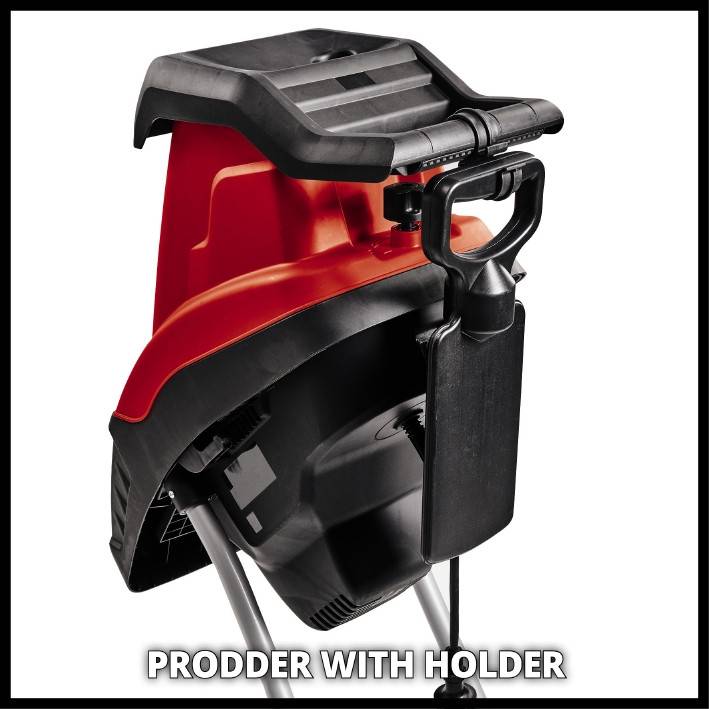 Електричний садовий подрібнювач Einhell GC-KS 2540 є потужним і надійним інструментом для швидкого і ефективного подрібнення гілок дерев і кущів, а також садових відходів. Він оснащений двома довговічними реверсивними ножами зі спеціальної сталі, які відрізняються високою продуктивністю різання. Потужність двигуна дорівнює 2500 Ватт, а швидкість обертів без навантаження складає 3800 об/хв. Щілинний отвір вхідної воронки полегшує для машини втягування матеріалу, який ви хочете подрібнити. Максимальний діаметр гілок для подрібнення дорівнює 40 мм. Для легкого та зручного транспортування подрібнювач має міцні шасі з колесами і практичну транспортну ручкою. Вимикач двигуна від перевантаження захищає двигун садового шредера GC-KS 2540. Воронку можна відкрити для технічного обслуговування та очищення. При цьому безпека користувача забезпечується за допомогою запобіжника, який перериває подачу струму на двигун. Безпечна робота також забезпечується захистом від перезапуску. Мішок для садового сміття легко кріпиться на гачках. Для вибивання будь-яких частин, які застрягли в воронці, передбачений штовхач.
