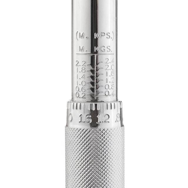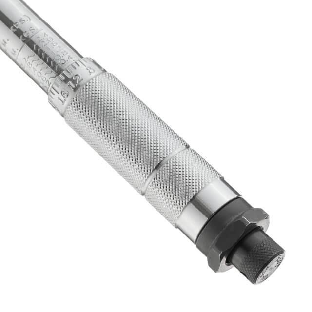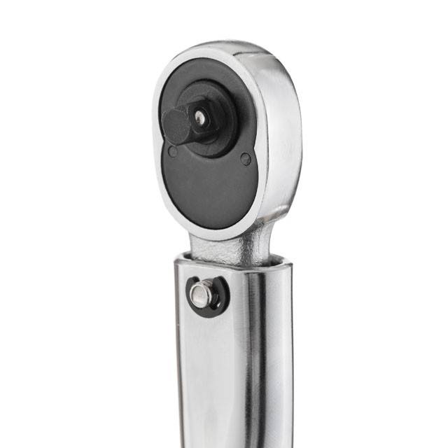 Ключ динамометричний має реверс, працює на затягування лише праворуч. Зручне регулювання крутного моменту з подвійною шкалою (Фут/фунт та Н/м) легко зчитується. Стопорна гайка на торці ключа фіксує налаштування значення крутного моменту, поки ви працюєте.