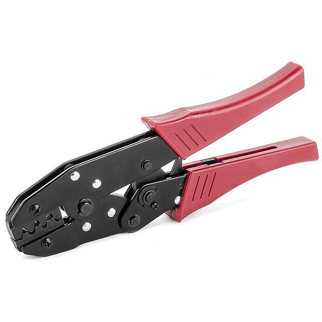 Інструмент з храповим механізмом дозволяє в кілька етапів рівномірно та якісно обтиснути наконечники без докладання особливих зусиль з боку майстра. Регулятор у вигляді шестерні дозволяє вибрати оптимальну силу обтиску. Поворотна пружина з важелем для розблокування храпового механізму.