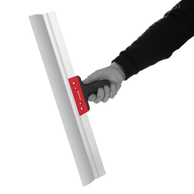 Ручка з пластику та алюмінієва напрямна роблять шпатель досить легким та зручним у використанні. Ручка має спеціальну ергономічну форму, що забезпечує максимально комфортну роботу. Покриття з гуми TPR проти ковзання в руках.