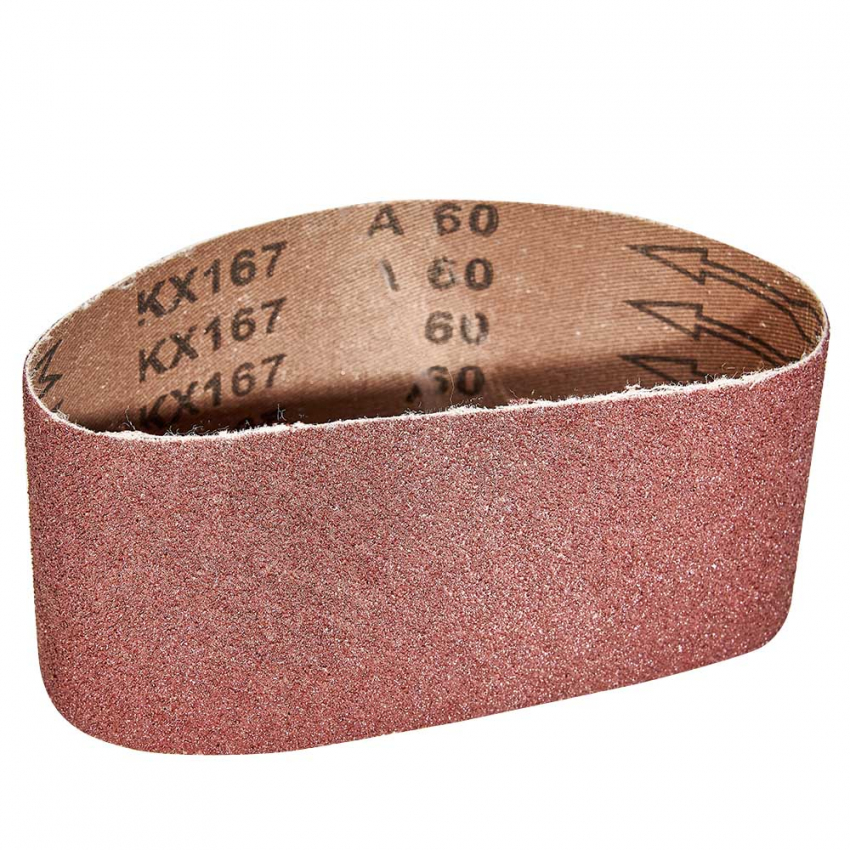 Абразивний матеріал стрічки — електрокорунд, зернистість — Р60. Міцна та еластична тканинна основа не рветься під час експлуатації, що забезпечує тривалу роботу навіть із міцним матеріалом. Посилений тип сполучного шва підвищує міцність і не викликає биття.