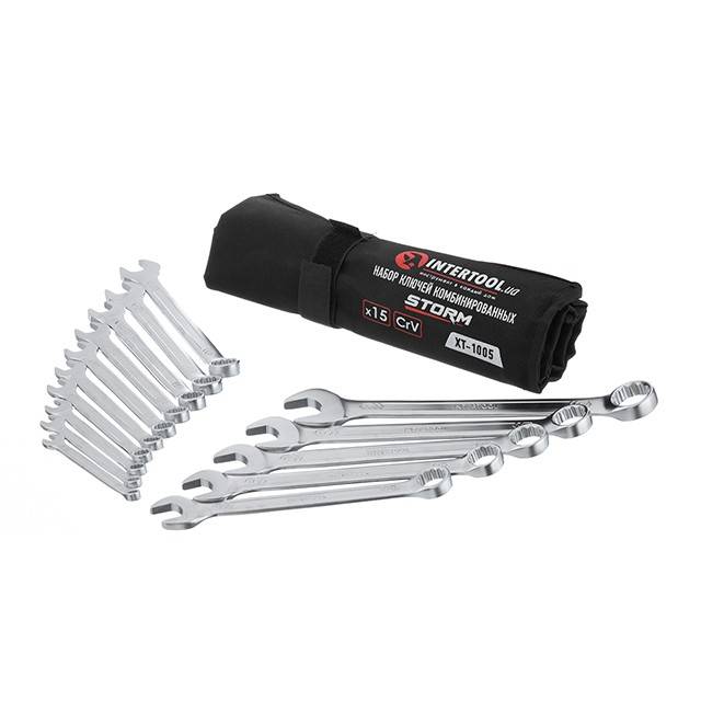 До набору INTERTOOL XT-1005 увійшли ріжково-накидні ключі, розмірами: 6, 7, 8, 9, 10, 11, 12, 13, 14, 15, 16, 17, 18, 19, 22 мм. Це дозволяє обрати необхідний ключ під будь-які завдання для монтажу та демонтажу різьбових з'єднань гайок та болтів.