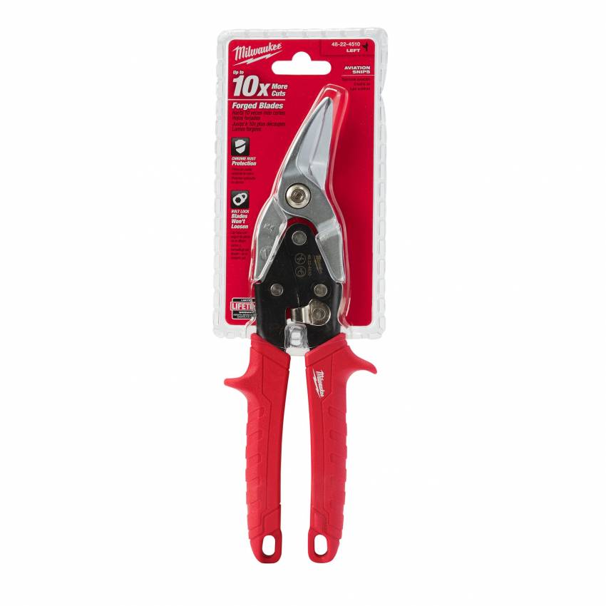 Прорізи для великого та вказівного пальців для більшого комфорту під час роботи та меншої втоми. Зубчасті ріжучі кромки запобігають прослизу при різанні. Менше втома руки при різанні товстих матеріалів. Дизайн із комбінованою дією важеля. Торсійна пружина відкриває губки автоматично під час різання для швидшого різання та меншої втоми. Покриття хромом захищає від корозії для більшого терміну служби. Додаткове загартування до 65 HRC. Виготовлені з легованої сталі для кращої зносостійкості. Механізм блокування однією рукою. Тонкий, обтічний дизайн для запобігання зачепленню в матеріалі. Три напрямки різання маркуються на голові, ручках та у колірній схемі ручок. Ергономічні та міцні гумові рукоятки для більшого комфорту та тривалого терміну служби. Підходять для прямих та фігурних різів. Ідеально підходять для невеликих радіусів різу та коротких надрізів. Зміщені губки: для тривалого або фігурного різання. Нахил губок 45 ° тримає користувача осторонь матеріалу. Подовжені губки: дозволяють різати швидше та акуратніше при тривалих прямих різах.