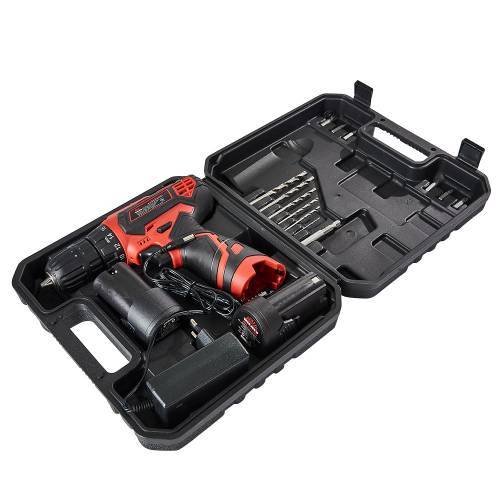 Дриль-шуруповерт акумуляторний Vitals AU 12/2KP має новий, яскравий дизайн. У комплекті постачання є 2 батареї ємністю 1500 мА∙год, а також зарядний пристрій. Дриль-шуруповерт акумуляторний Vitals AU 12/2KP постачається в міцному пластиковому кейсі для зручності транспортування та зберігання. Максимальний діаметр хвостовика оснащення, який можна зафіксувати у швидкозатискному патроні, дорівнює 10 мм. Модель має 2 швидкості обертання шпинделя. На першій швидкості досягається максимальний крутний момент у 25 Нм — для закручування кріпильних виробів. На другій швидкості досягаються високі оберти в 1400 об/хв — для свердління отворів.