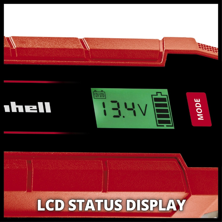 Зарядний пристрій Einhell CE-BC 5 M LiFePO4 це високоякісний апарат для заряджання акумуляторів у сучасних автомобілях, процес зарядки в якому контролює мікропроцесор. Зарядний пристрій має ряд функцій захисту і не потребує технічного обслуговування. Особлива увага при розробці зарядного пристрою була приділена високій швидкості зарядки без навантаження на акумулятор, пристрій розроблений для подовження терміну служби акумуляторів при їх максимальній продуктивності. Детальний індикатор зарядки робить зарядний пристрій менш складним в роботі, ніж звичайні пристрої. Універсальний зарядний пристрій Einhell сумісний з гелевими і AGM акумуляторами, а також з акумуляторами, які не обслуговуються, акумуляторами з низьким рівнем заряду, свинцево-кислотними акумуляторами. CE-BC 5 M LiFePO4 автоматично прилаштовується до заряджання акумуляторів з напругою 12 В, а мікропроцесорний контролер автоматично контролює і керує багатоступінчастим циклом зарядки. Розумна електронна система контролю зарядки аналізує стан підєднаного акумулятора і ініціює необхідні кроки зарядки в залежності від стану акумулятора. Функція підзарядки зберігає і захищає акумулятор і забезпечує постійний оптимальний заряд. Таким чином, СE-BC 5 М LiFePO4 також ідеально підходить для сезонних транспортних засобів, які не використовуються протягом тривалого періоду часу. Замість того, щоб дозволити поступовий повний розряд і ризик надмірного розряду, зарядний пристрій підтримує акумулятор на оптимальному рівні заряду. Це продовжує термін служби акумулятора і запобігає необхідності витрачати багато грошей для заміни дефектного акумулятора. Автомобіль, мотоцикл чи скутер буде готовий до експлуатації на старті сезону. Зимовий режим зарядки був розроблений спеціально для температур зовнішнього середовища нижче 5° C. Автоматизовані система захисту від перезарядження, короткого замикання і від зворотної полярності запобігає пошкодженню зарядного пристрою і акумулятора. Зарядний пристрій Einhell має ступінь захисту IP65 і захищений від пилу і бризок води. LCD індикатор показує напругу акумулятора та стан зарядки. Стан заряду акумулятора і зарядного пристрою: 25%, 50%, 75% і 100% заряду, акумулятор 12 В та індикація зарядки у зимовому режимі. Сигнальна лампа загоряється відразу ж, якщо виявляються будь-які проблеми. Зажими для підключення до клем акумулятора повністю ізольовані. На корпусі зарядного пристрою є отвір для кріплення до стіни. Зарядний пристрій Einhell CE-BC 5 M LiFePO4 підходить для заряджання 12 В акумуляторів ємністю до 120 Ампер і максимальним струмом заряджання 5 Ампер.