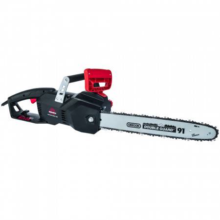 легкість та простота в роботі шина та ланцюг від ТМ Oregon надійний потужний електродвигун висока швидкість ланцюга поздовжнє розташування двигуна подвійна система захисту двигуна аварійне гальмо ланцюга автоматичний масляний насос металеві шестерні в редукторі