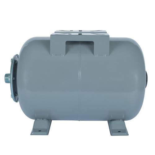Гідроакумулятор – це сталевий бак, усередині якого встановлена еластична мембрана, яка має форму колби й поділяє об’єм бака на дві частини. В одній частині (в мембрані) міститься вода, в іншій – повітря під тиском. Коли насос увімкнений, вода заповнює еластичну мембрану і стискає повітря в іншій частині бака. Якщо насос вимкнений, стиснене повітря витісняє воду з мембрани, підтримуючи заданий тиск у системі до моменту автоматичного увімкнення насоса.