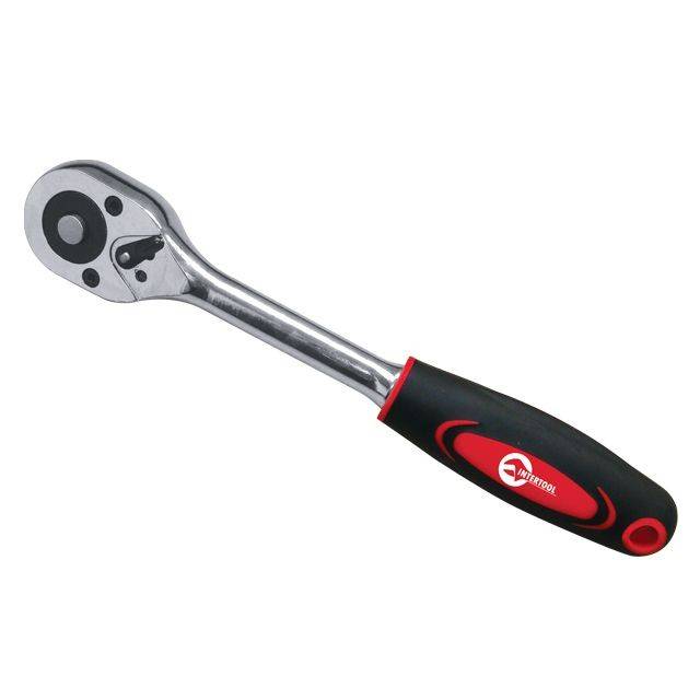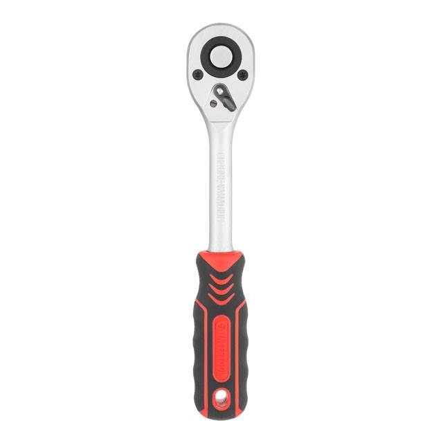 Двокомпонентна ручка з гумовими вставками гарантує надійне зчеплення навіть із брудними або забрудненими в мастилі руками. Міцна, зручна тріскачка комфортно лежить у долоні під час роботи.