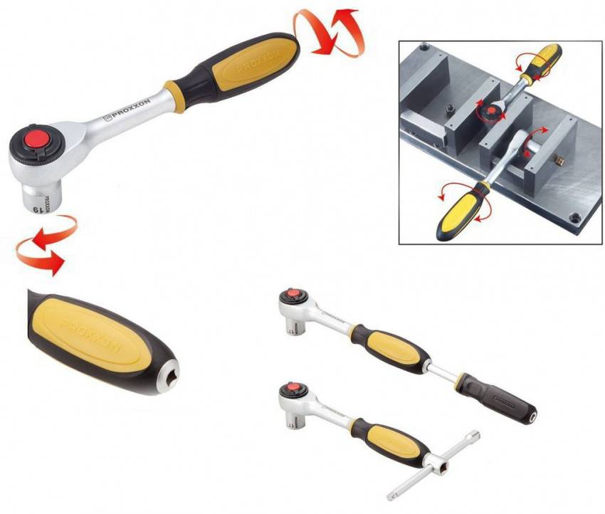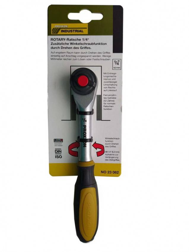 Ротаційна тріскачка ROTARY на 1/4”. З рукояткою, що обертається, для кращого затягування (код 23082) – компактний тримач з реверсним механізмом і рукояткою, що обертається, для торцевих головок і біт різної конфігурації.