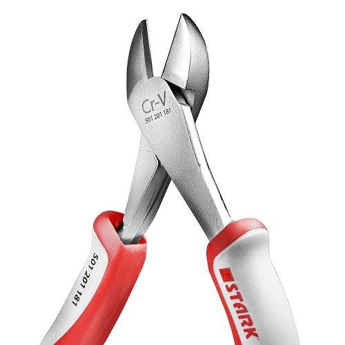 Бокорізи Stark 180 мм – кусачки призначені для відрізання дроту, дротів, зняття ізоляції з кабелів та розрізання невеликих елементів із пластику, гуми або металу. Бокорізи обладнані ексцентриковим механізмом, який полегшує зусилля натискання рукояток для легкого затиску. Рукоятки двокомпонентні, завдяки чому інструментом комфортно та безпечно працюватиме тривалий час. Виготовлені з хром-ванадієвої сталі з нікельованим покриттям, завдяки чому стійкі до корозії, а також зносостійкі та витривалі для великих навантажень. Stark 180 мм – бокоріз ексцентриковий, який полегшить роботу на 80%.