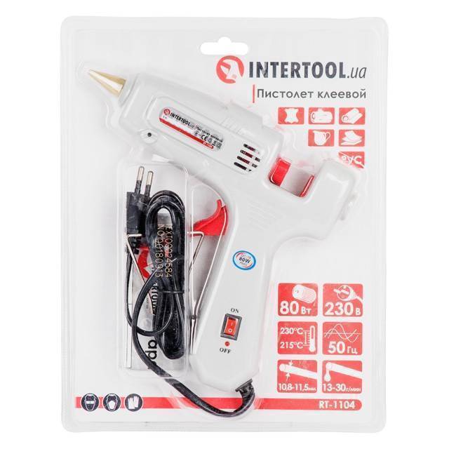 Клейовий пістолет INTERTOOL RT-1104 ідеально підходить для хобі, виготовлення різноманітних виробів та для ремонтних робіт. Стане в пригоді дизайнерам, флористам, конструкторам, та іншим умільцям зі сфери «хенд-мейд».