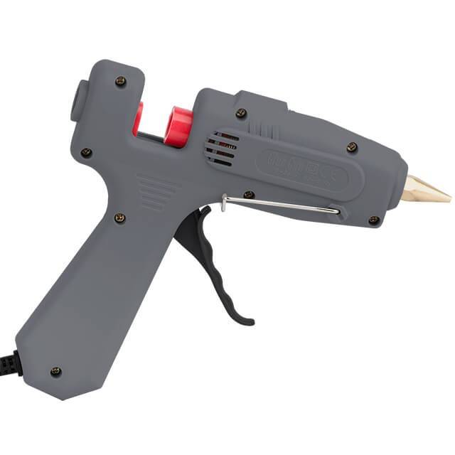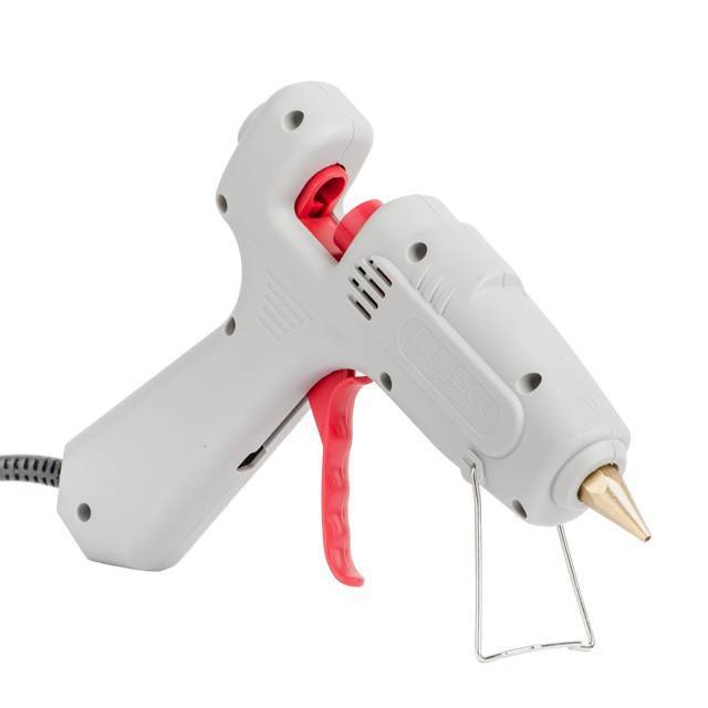 Клейовий пістолет має компактний корпус зі зручним курком, це полегшує роботу з дрібними виробами в умовах обмеженого простору та дозволяє точно дозувати клей в необхідних кількостях.