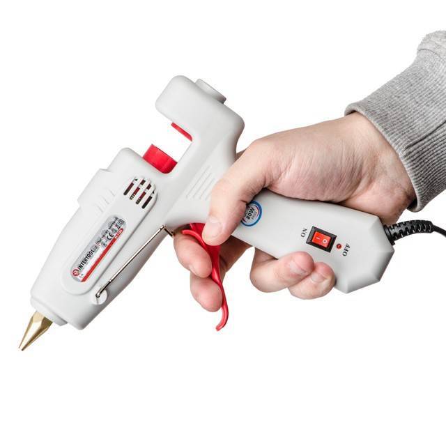 За допомогою термопістолета ви моментально склеїте елементи, предмети, поверхні, при цьому клейові стрижні добре взаємодіють з більшістю матеріалів: папером, картоном, тканиною, шкірою, склом, керамікою, деревом тощо.