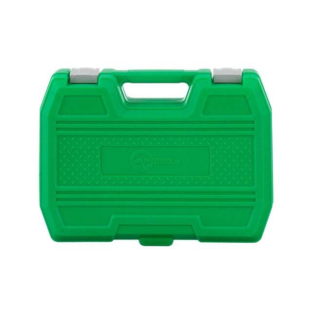 У наборі тріскачка з посадковим квадратом 1/4', з реверсом, кнопкою для скидання та фіксації головок. Храповик на 72 зуби забезпечує м'якість ходу і дозволяє працювати в умовах обмеженого простору. Ручка тріскачки двокомпонентна з гумовою накладкою в місці хвату для кращої фіксації в руці, не ковзає й не випадає під час роботи.