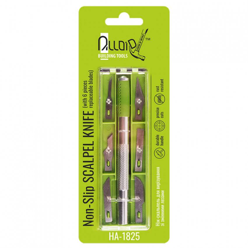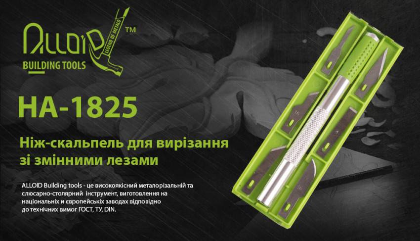 <p><strong>Скальпель-ніж Alloid НА -1825</strong> виготовлений повністю з металу. Він має дуже гостре лезо і призначений для акуратної і точної різання паперу, картону. Також його можна використовувати для різання пластикових, гумових і навіть дерев'яних деталей в процесі побудови масштабних моделей.</p><p>Гумова накладка і рифлення на корпусі ножа перешкоджає ковзанню пальців. Завдяки цанговий затиск лезо надійно кріпиться до ручки, це дозволяє докладати значне зусилля і різати досить тверді матеріали.</p><p> У комплекті зі скальпелем в невеликому пластиковому пеналі поставляється ще 6 змінних лез різної форми, такого запасу різноманітних лез досить для вирішення максимально широких завдань. Леза виконані з хірургічної сталі і мають лазерну заточку.</p><p>Комплектація:</p><ul> <li>канцелярський скальпель;</li> <li>пластиковий пенал з відкидною кришкою;</li> <li>6 змінних лез.</li></ul><p> </p><p><strong>Інструмент Alloid</strong> для професіоналів и Домашніх майстрів, Ідеальне поєднання якості и демократичної ціни.</p>