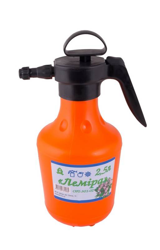 • матеріал бака поліетилен • форсунка з регульованим факелом розпилу • високопродуктивний насос • робочий тиск 2,0 - 2,5 бар • вага - 450 г • клапан для випуску тиску • призначений для розпилення засобів захисту рослин, поливу розсади, кімнатних і балконних рослин, в теплицях та на клумбах