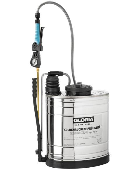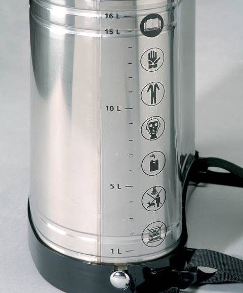 Ранцевий обприскувач Type2016 обладнаний резервуаром з нержавіючої високоякісної сталі. 16 л розпиляного засобу можна залити, фільтр, що при цьому входить, запобігає попаданню забруднень з рідини в інструмент. Стабільним поворотним важелем активуйте потужний пластиковий насос і подавайте засіб того, що розпиляло через подовжувальну трубу завдовжки 0,5 м. Інтегрований в швидкодіючий клапан-відсікач манометр показує тиск розпирскування, існуючий в соплі. М'який ремінь з системою швидкого натягнення і інтегрована опора для спини забезпечують необхідний комфорт при носінні. Модель підходить для внесення біологічних засобів захисту рослин.