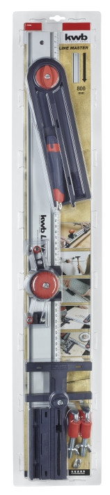 LINE MASTER линейковая система в виде полного универсального набора из 10-и предметов, удобна при выполнении домашних ремонтных работ. Набор состоит из одной прецизионной линейки на 80 см (№ арт. 784208), регулируемого углового упора (№ арт. 784300), двух зажимных струбцин (№ арт. 784500), пильной направляющей для циркулярных пил и электролобзиков (№ арт. 784400), направляющей для ножа (№ арт. 784600), дизайнерского канцелярского ножа (№ арт. 014000) и рукояточного комплекта с разметчиком точек сверления (№ арт. 784800).