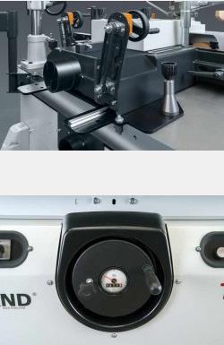 Верхнє огородження з відкидним фронтальним притиском заготовки, револьверными упорами на щічках (8 настроюваних значень) і мікрометричним гвинтом для точної установки