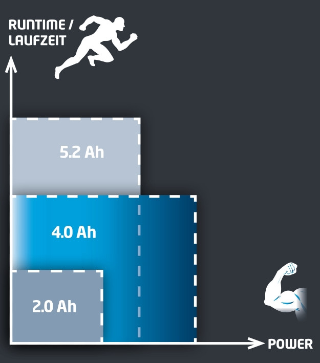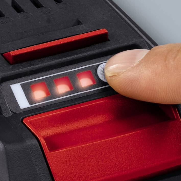 Літій-іонний акумулятор 18 В ємністю 4,0 Аг є представником сімейства Power X-Change і сумісний з усіма пристроями даної лінійки. Максимальна безпека користувачів досягається за рахунок активної системи керування батареями від Einhell. Адаптивні цикли зарядки значно збільшують строк служби акумулятора. Електронні компоненти акумулятора постійно контролюють найважливіші параметри акумулятора. Літій-іонні елементи мають низький рівень саморозряду. Акумулятор оснащений трирівневим світлодіодним індикатором стану заряду. Від ударів акумулятор захищає прогумований корпус, в якій ергономічно вбудовані всі важливі елементи.