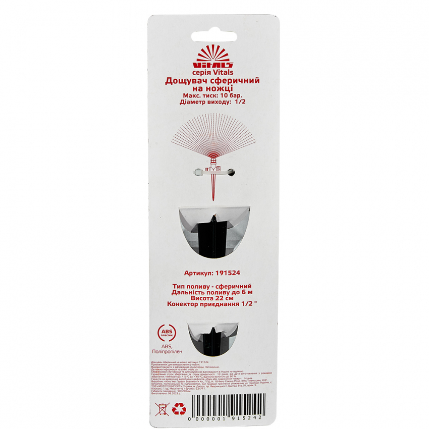 Дощувач сферичний на ніжці Vitals використовується для стаціонарного поливу присадибних ділянок.