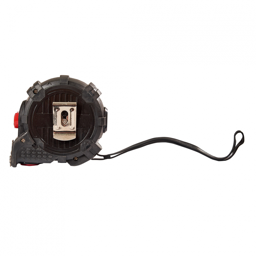 Металева кліпса дозволяє зручно носити інструмент на ремені під час роботи, а за допомогою тканинного ремінця можна носити рулетку також на зап'ястя.
