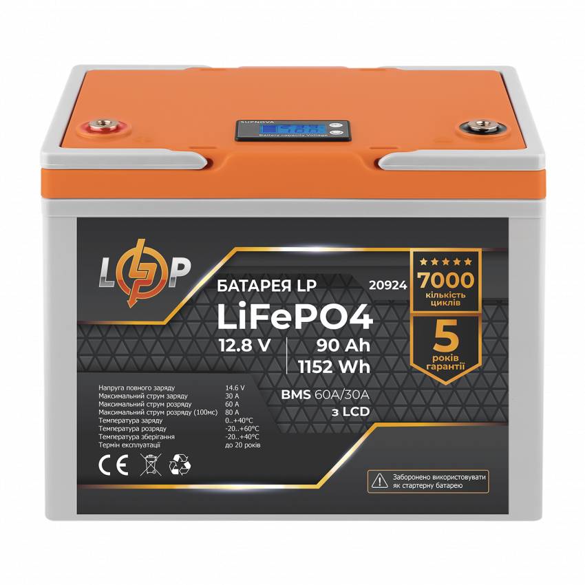 Акумулятор LP LiFePO4 LCD 12V (12,8V) - 90 Ah (1152Wh) (Smart BMS 60A/30А) пластик