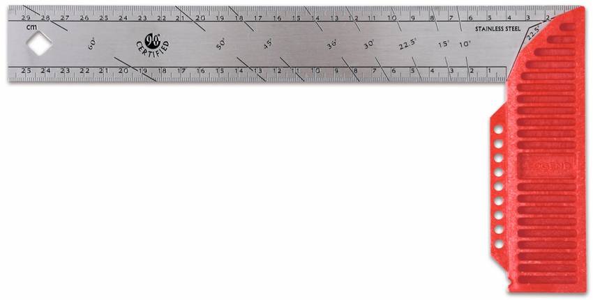 унікальний розмічальний косинець з опорною рейкою застосовується для вимірювання зовнішніх та внутрішніх кутів різних деталей, це відмінний вибір не тільки для домашніх, але й професійних майстрів; для скошування та обрамлення прорізів передбачені кути 22,5, 45, 67,5 та 90 град.; завдяки таблиці на торцевій частині можна швидко визначити довжину, велике градуювання дозволяє легко зчитувати показання; косинець виконаний з нержавіючої сталі та покритий лаковим покриттям для захисту від корозії. Читати докладніше