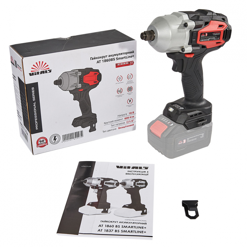 Гайкокрут акумуляторний Vitals Professional AT 1860 BS SmartLine+ — це найпотужніша модель у лінійці гайкокрутів серії SmartLine+. Він призначений для виконання найвибагливіших завдань із кріплення та відкручування гайок, забезпечуючи високий крутний момент аж до 600 Нм.